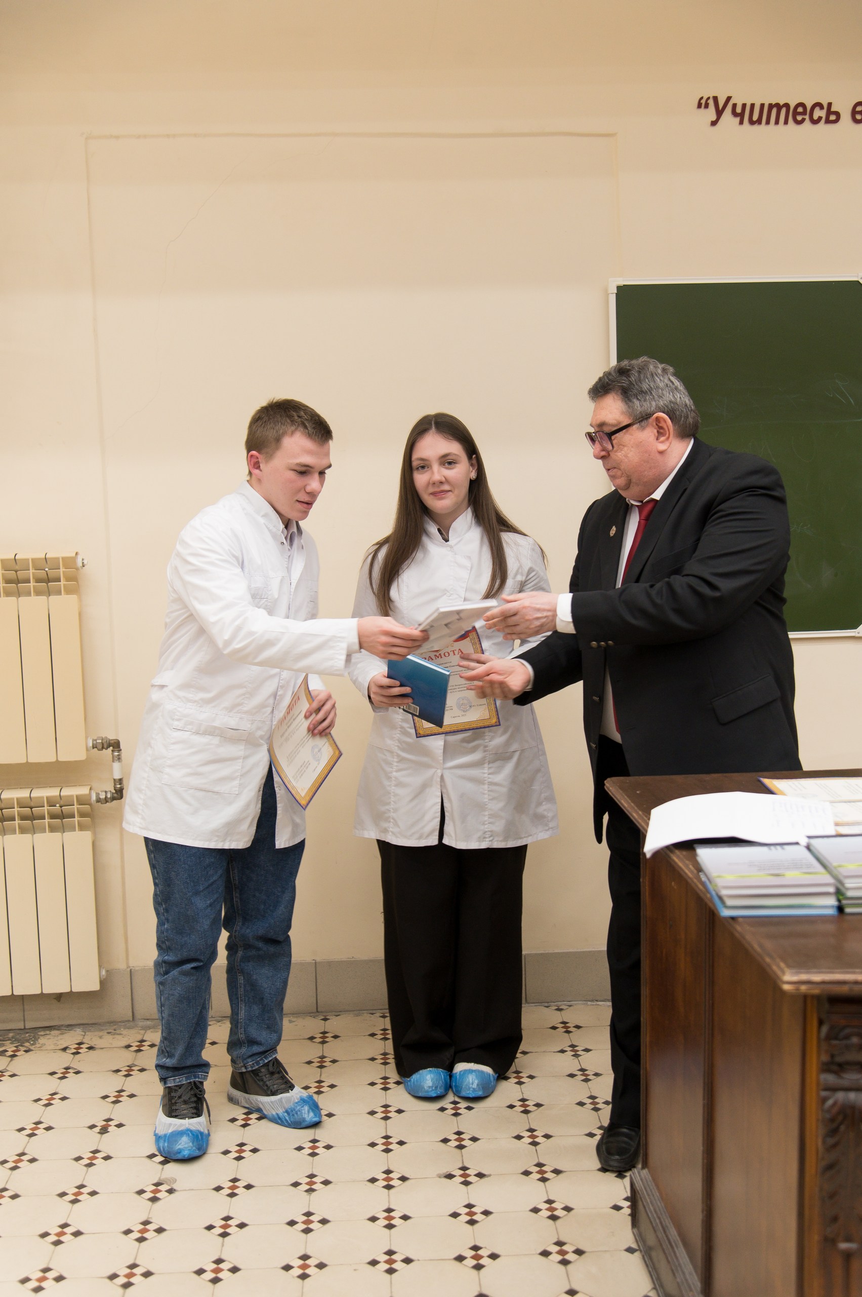 3 место заняли студентка лечебного факультета ФГБОУ ВО БГМУ МЗ РФ — Сайфутдинова Рината Рамильевна с докладом «Сравнительная характеристика питания студентов медицинского вуза и практикующих врачей», студенты 5 курса МПД ФГБОУ ВО Астраханского ГМУ МЗ РФ — Ходжаев Азамат Жамаладдинович, Корелин Владислав Сергеевич, Ходжаев Владимир Георгиевич с докладом «Гигиеническое воспитание обучающихся колледжа в профилактике заболеваний костно-мышечной системы», а также студенты 3 курса института клинической медицины ФГБОУ ВО СГМУ им. В.И. Разумовского МЗ РФ Арефкина Алена Сергеевна, Боровикова Ангелина Даниловна с докладом «Гигиена труда врачей 6-й городской клинической больницы имени академика В.Н. Кошелева города Саратова: анализ условий труда и направления минимизации рисков».